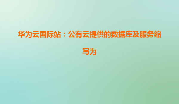 2025-11-06华为云国际站:公有云提供的数据库及服务缩写解析 引言 随着云计算技术的快速发展,数据库即服务(DBaaS)成为企业数字化转型的核心组件。华为云国际站作为全球领先的云服务提供商,通过...