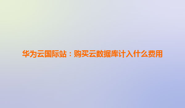2025-11-06华为云国际站:购买云数据库计入什么费用 引言:云数据库的成本构成解析 随着企业数字化进程加速,云数据库因其弹性伸缩、高可用性等优势成为核心基础设施。华为云国际站(HUAWEICLOUDInternational)提...