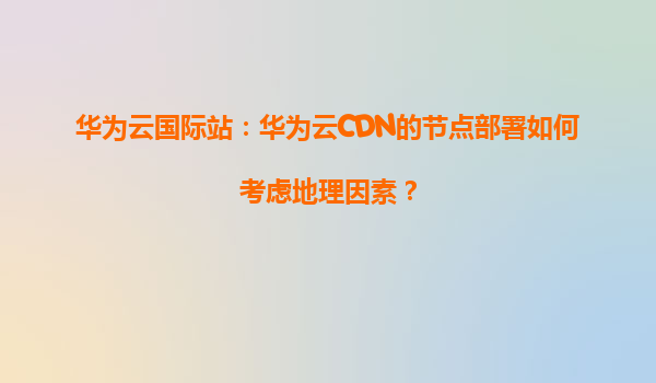 2026-01-09华为云国际站:华为云CDN的节点部署如何考虑地理因素? 一、引言 在数字化时代,内容分发网络(CDN)已成为提升全球用户体验的关键技术。华为云CDN凭借其全球化的节点布局和智能调度能力,为企业提供了高效...