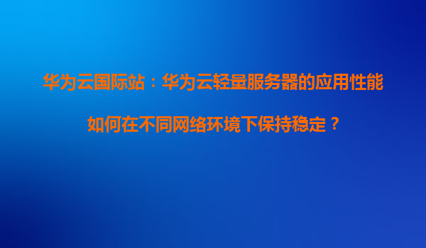 2026-01-09华为云国际站:华为云轻量服务器的应用性能如何在不同网络环境下保持稳定? 引言:数字化时代的稳定性挑战 在全球化业务部署和混合办公常态化的今天,企业应用对服务器性能的稳定性提出了更...