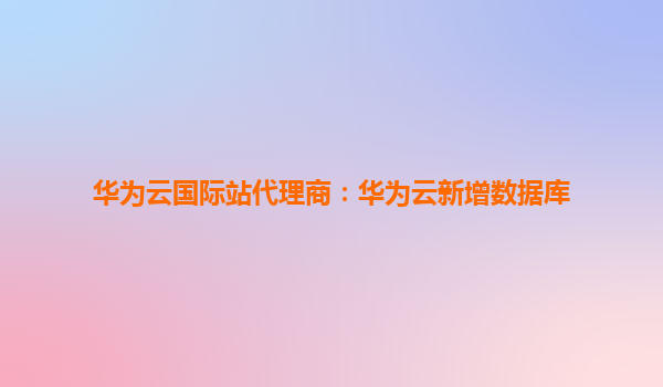 华为云国际站代理商:华为云新增数据库,赋能企业数字化转型 华为云数据库:企业数据管理的强大引擎 随着企业数字化转型的深入,数据已成为核心资产。华为云作为全球领先的云服务提供商,不...