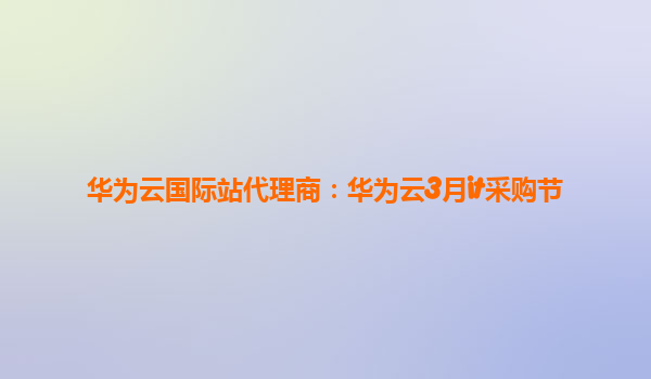 2026-01-02华为云国际站代理商:华为云3月IT采购节盛大开启 一、华为云3月IT采购节:企业数字化升级的黄金机遇 每年3月,华为云国际站代理商携手华为云推出“IT采购节”活...