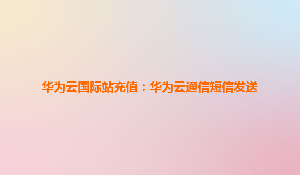 2026-01-02华为云国际站充值指南:华为云通信短信发送服务全解析 一、华为云通信短信服务简介 华为云通信(HUAWEICLOUDSMS)是基于华为云全球基础设施构建的企业级短信服务平台,提供覆盖200+国家和地区的...