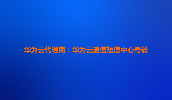 2026-01-02华为云代理商:华为云通信短信中心号码全面解析 一、华为云通信短信中心概述 华为云通信短信中心是华为云为企业客户提供的高效、安全、稳定的短信服务解决方案。通过整...