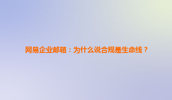 2025-06-15网易企业邮箱:为什么说合规是生命线? 随着信息化时代的到来,电子邮件已成为现代企业沟通与协作的重要工具。在众多邮件服务提供商中,网易企业邮箱凭借其专业、安全、稳定的服务广受用户青睐。然而...