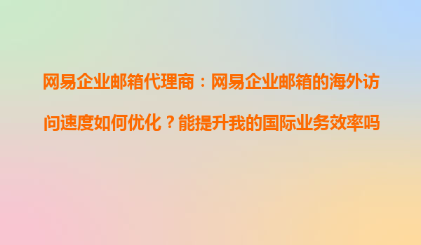 2025-11-02网易企业邮箱海外访问速度优化方案 网易企业邮箱针对全球业务场景设计了多维度加速方案,海外用户可通过选择就近接入点、启用智能分流技术以及专属网络优化实现毫秒级响应。其新加坡、法兰克福、硅谷三大国际枢纽节...