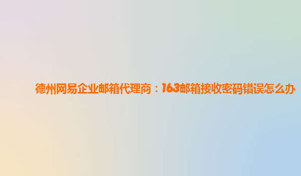 2024-02-20德州网易企业邮箱代理商:163邮箱接收密码错误怎么办 在使用163企业邮箱时,有时候会遇到接收密码错误的问题,这可能是由于密码输入错误、网络问题或者其他原因导致的。下面是一些解决方法: 1.确认密码输入正确 ...