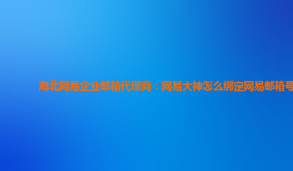 2024-02-20网易企业邮箱代理商:网易大神怎么绑定网易邮箱号 作为一家知名的企业邮箱服务提供商,网易企业邮箱拥有着诸多优势和好用之处,受到了众多企业和个人用户的青睐。如果你想体验网易企业邮箱的便捷和高效,可以选择找...
