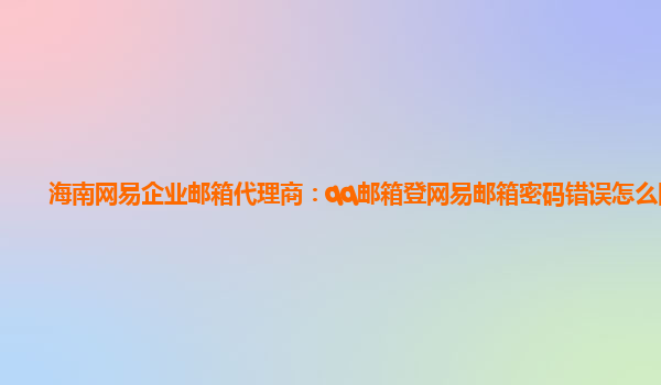 格尔木网易企业邮箱代理商:qq邮箱登网易邮箱密码错误怎么解决 在使用网易企业邮箱时,有时候可能会遇到qq邮箱登录网易邮箱时出现密码错误的情况。这可能是由于输入错误、账号被盗或者网络问题等原因所致。下面我...