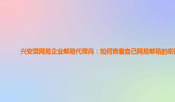 2024-02-20巴彦淖尔市网易企业邮箱代理商:网易邮箱大师怎么查看密码是多少 在使用网易企业邮箱时,有时候我们会忘记自己的密码,这时候就需要通过一些方法来找回密码。作为巴彦淖尔市的网易企业邮箱代理商,网易邮箱大师为您...