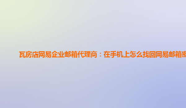 2024-02-20庄河网易企业邮箱代理商:手机上怎么找回网易邮箱密码呢 作为庄河地区的网易企业邮箱代理商,我们深知企业邮箱在日常工作中的重要性。使用企业邮箱可以提升企业形象,提高工作效率,保护信息安全等诸多优势...