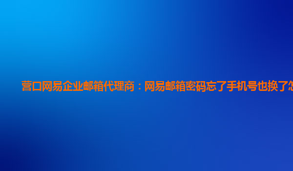 营口网易企业邮箱代理商:网易邮箱密码忘了手机号也换了怎么办 随着互联网的发展,网易企业邮箱成为了企业通信中不可或缺的工具。但是在使用过程中,我们也会遇到一些问题,比如忘记了邮箱密码且手机号码也已经更换...