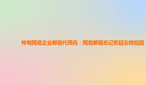 2024-02-20网易企业邮箱代理商:网易邮箱忘记密码怎样找回来 作为网易企业邮箱代理商,我们经常接到用户询问如何找回忘记密码的问题。今天我们就来详细介绍一下网易邮箱忘记密码怎样找回来。 1.找回密码流程 首先,用户可以...