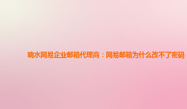 2024-02-20响水网易企业邮箱代理商:网易邮箱为什么改不了密码 网易企业邮箱作为国内知名的企业邮箱服务商,提供了稳定、安全、可靠的企业邮箱服务。然而,有时候用户会遇到无法修改密码的问题,让人困惑不已。那么,网易邮箱...