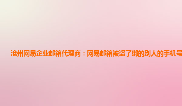 2024-02-19沧州网易企业邮箱代理商:网易邮箱被盗了绑的别人的手机号怎么办 随着互联网的快速发展,网络安全问题也越来越受到人们的关注。在使用网易企业邮箱时,如果不小心遭遇邮箱被盗,绑定了别人的手机号,该如何处理呢?...