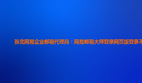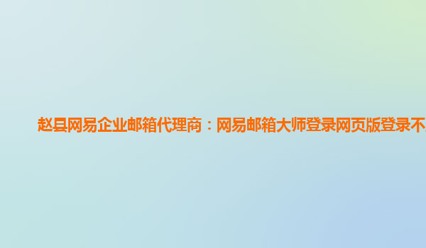2024-02-19赵县网易企业邮箱代理商:解决网易邮箱大师登录问题 近期,一些用户反映在使用网易企业邮箱大师登录网页版时遇到了困难,无法顺利登录账户。作为赵县网易企业邮箱代理商,我们将为您解释这一问题,并介绍网易企业邮...