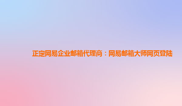 正定网易企业邮箱代理商:网易邮箱大师网页登陆 随着互联网的快速发展,企业对于邮件服务的需求也越来越高。作为一家专业的企业邮箱服务提供商,网易企业邮箱以其稳定、安全、便捷的特点受到了广大企业用户的青睐。...