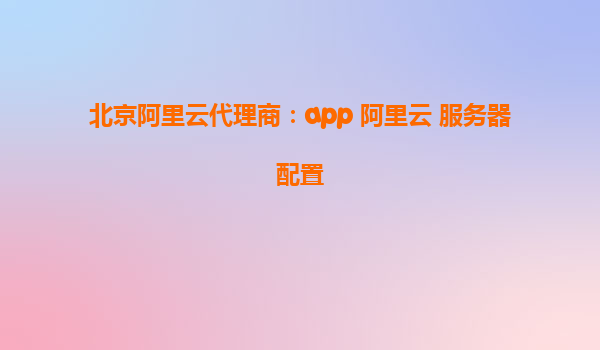 北京阿里云代理商:app+阿里云+服务器配置全解析