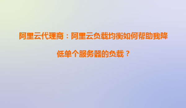 阿里云代理商:阿里云负载均衡如何帮助我降低单个服务器的负载?
