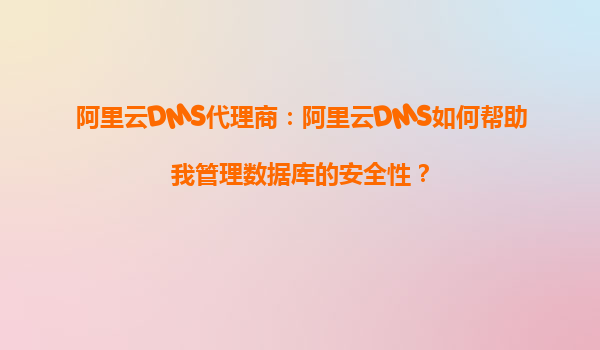 阿里云DMS代理商:阿里云DMS如何帮助我管理数据库的安全性?
