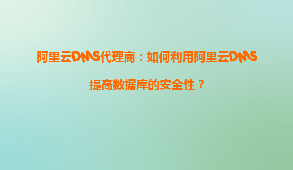 阿里云DMS代理商:如何利用阿里云DMS提高数据库的安全性?