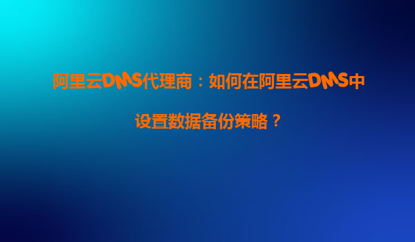 阿里云DMS代理商:如何在阿里云DMS中设置数据备份策略?