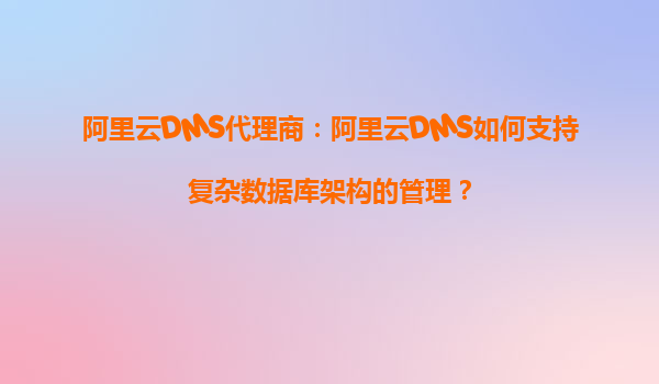 阿里云DMS代理商:阿里云DMS如何支持复杂数据库架构的管理?