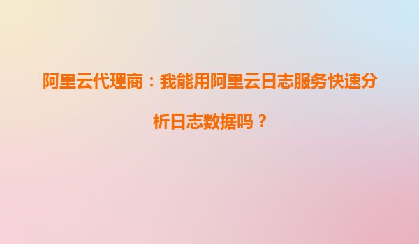 阿里云代理商:我能用阿里云日志服务快速分析日志数据吗?