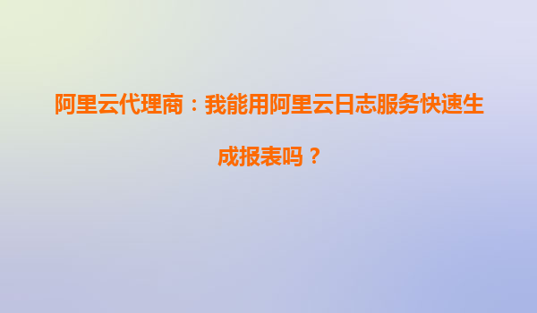 阿里云代理商:我能用阿里云日志服务快速生成报表吗?