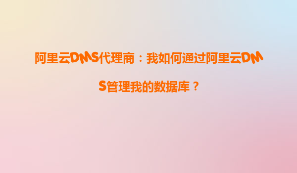 阿里云DMS代理商:我如何通过阿里云DMS管理我的数据库?