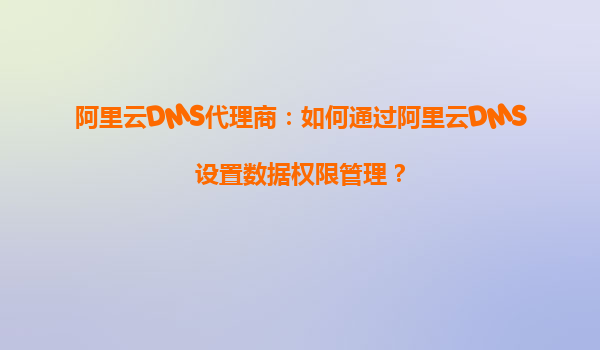 阿里云DMS代理商:如何通过阿里云DMS设置数据权限管理?