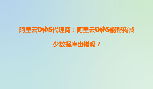 阿里云DMS代理商:阿里云DMS能帮我减少数据库出错吗?