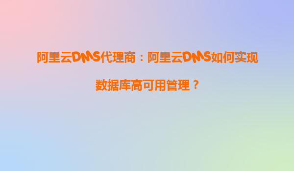阿里云DMS代理商:阿里云DMS如何实现数据库高可用管理?