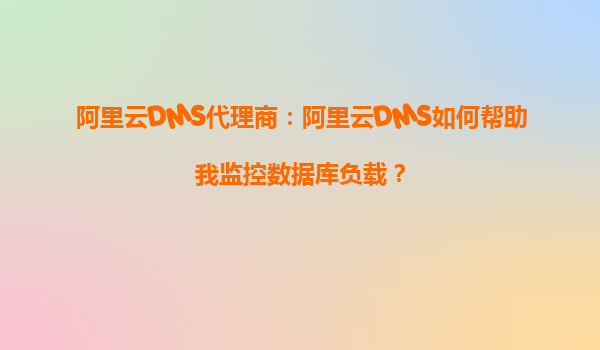 阿里云DMS代理商:阿里云DMS如何帮助我监控数据库负载?