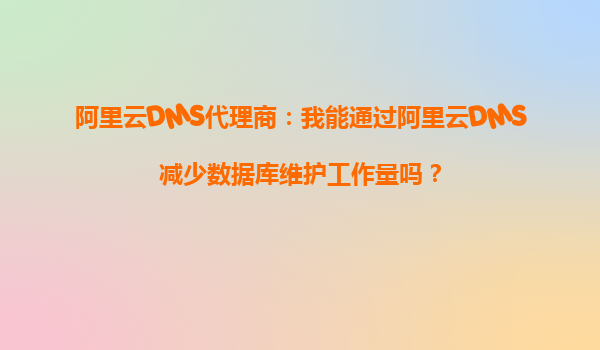 阿里云DMS代理商:我能通过阿里云DMS减少数据库维护工作量吗?