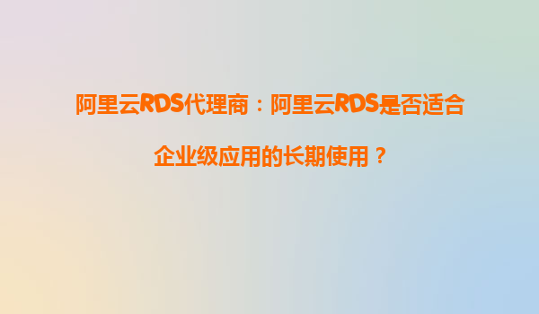 阿里云RDS代理商:阿里云RDS是否适合企业级应用的长期使用?