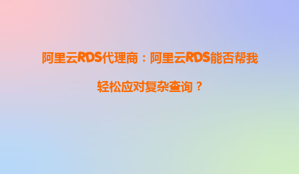 阿里云RDS代理商:阿里云RDS能否帮我轻松应对复杂查询?