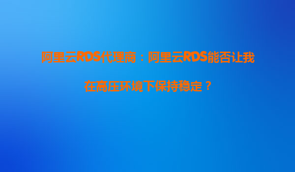 阿里云RDS代理商:阿里云RDS能否让我在高压环境下保持稳定?