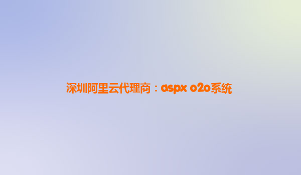 深圳阿里云代理商:ASPX O2O系统解决方案