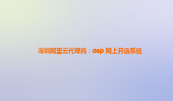深圳阿里云代理商:ASP网上开店系统解决方案
