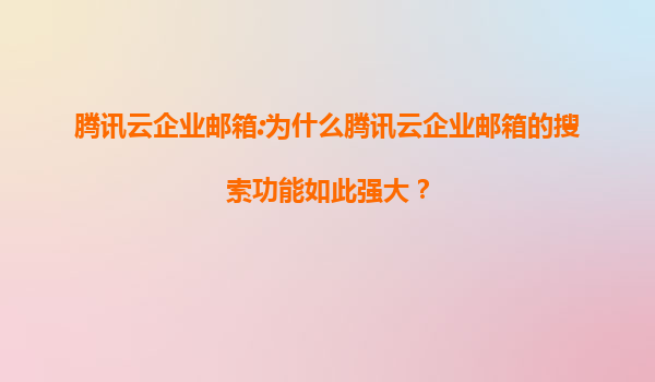 2025-07-08腾讯云企业邮箱:为什么搜索功能如此强大? 在当今快节奏的商业环境中,高效的邮件管理已成为企业运营的关键。腾讯云企业邮箱作为国内领先的企业邮箱服务商,其卓越的搜索功能备受用户青睐。本文将深入剖析腾讯云...