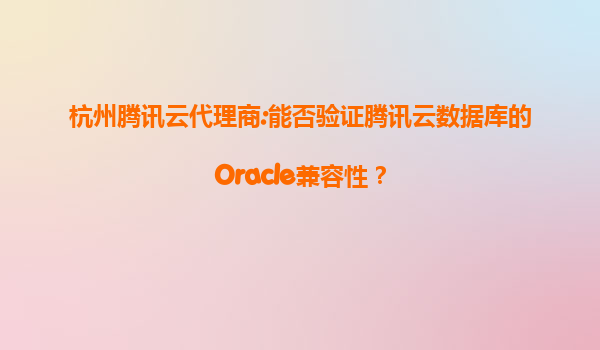2025-07-08杭州腾讯云代理商:如何验证腾讯云数据库的Oracle兼容性? 随着企业数字化转型加速,数据库作为核心基础设施的兼容性与稳定性备受关注。腾讯云作为国内领先的云服务商,其数据库产品因高度兼容Oracle特性而广受企...