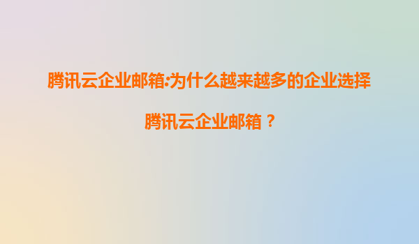 2025-07-08腾讯云企业邮箱:为什么越来越多的企业选择腾讯云企业邮箱? 引言 随着数字化转型的加速,企业邮箱已成为企业日常运营不可或缺的工具。腾讯云企业邮箱凭借其强...