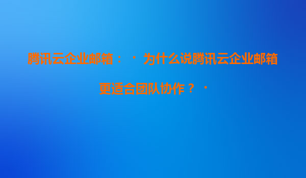 腾讯云企业邮箱:为什么说它更适合团队协作? 引言 在数字化办公时代,企业邮箱不仅是沟通工具,更是团队协作的核心枢纽。腾讯云企业邮箱凭借其强大的功能、稳...