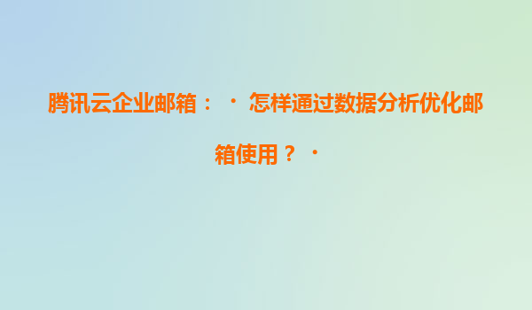 2025-07-07腾讯云企业邮箱:如何通过数据分析优化邮箱使用? 引言 在数字化办公时代,企业邮箱不仅是沟通工具,更是数据资产的重要载体。腾讯云企业邮箱凭借其强大的数据...