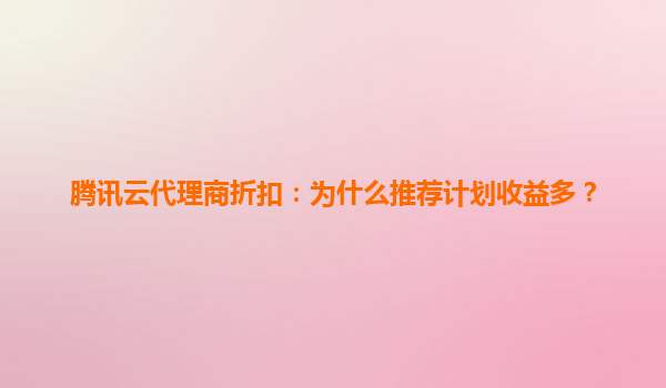 2025-07-07腾讯云代理商折扣:为什么推荐计划收益多? 引言 随着云计算市场的快速发展,越来越多的企业和个人选择将业务迁移到云端。腾讯云作为国内领先的云服务提供商,...