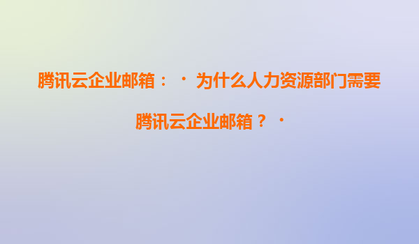 2025-07-07腾讯云企业邮箱:为什么人力资源部门需要腾讯云企业邮箱? 引言 在现代企业管理中,人力资源部门(HR)承担着招聘、员工沟通、薪资管理、档案存储等重要职责。...