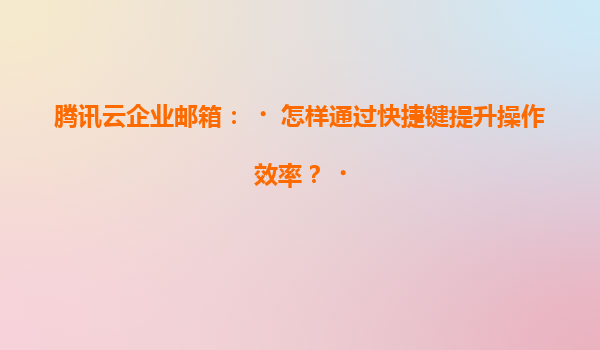 2025-07-06腾讯云企业邮箱:快捷键操作提升办公效率指南 一、腾讯云企业邮箱的核心优势 作为国内领先的企业级邮箱服务,腾讯云企业邮箱依托腾讯二十余年通信技术积累,提供99.99%高可用性服务,支持百万级邮件瞬时投递。...