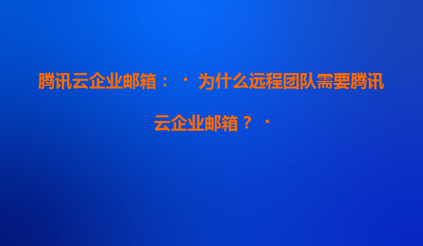 2025-07-06腾讯云企业邮箱:为什么远程团队需要腾讯云企业邮箱? 一、远程团队的协作痛点与邮箱需求 随着远程办公的普及,团队分散在不同地域带来的沟通效率低、数据安全隐患、管理成本高等问题日...