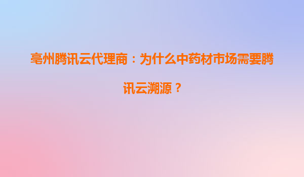 2025-07-05亳州腾讯云代理商:为什么中药材市场需要腾讯云溯源? 引言:中药材市场的痛点与机遇 中药材作为中国传统医药的重要组成部分,其质量安全直接关系到消费者的健...